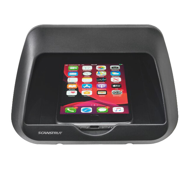 IPX6 vesitiivis 12/24V Qi-sertifioitu latausalue mahdollistaa langattoman latauksen ulkotiloissa ilman tarvetta latauskaapeleille. Lokero on täydellinen integroitavaksi kojelautoihin, penkkeihin, kaappeihin ja muihin paikkoihin. Aseta puhelin lokeroon, jolloin se alkaa ladata välittömästi. Todella pitävä matto estää puhelimen liukumisen liikkeessäkään.