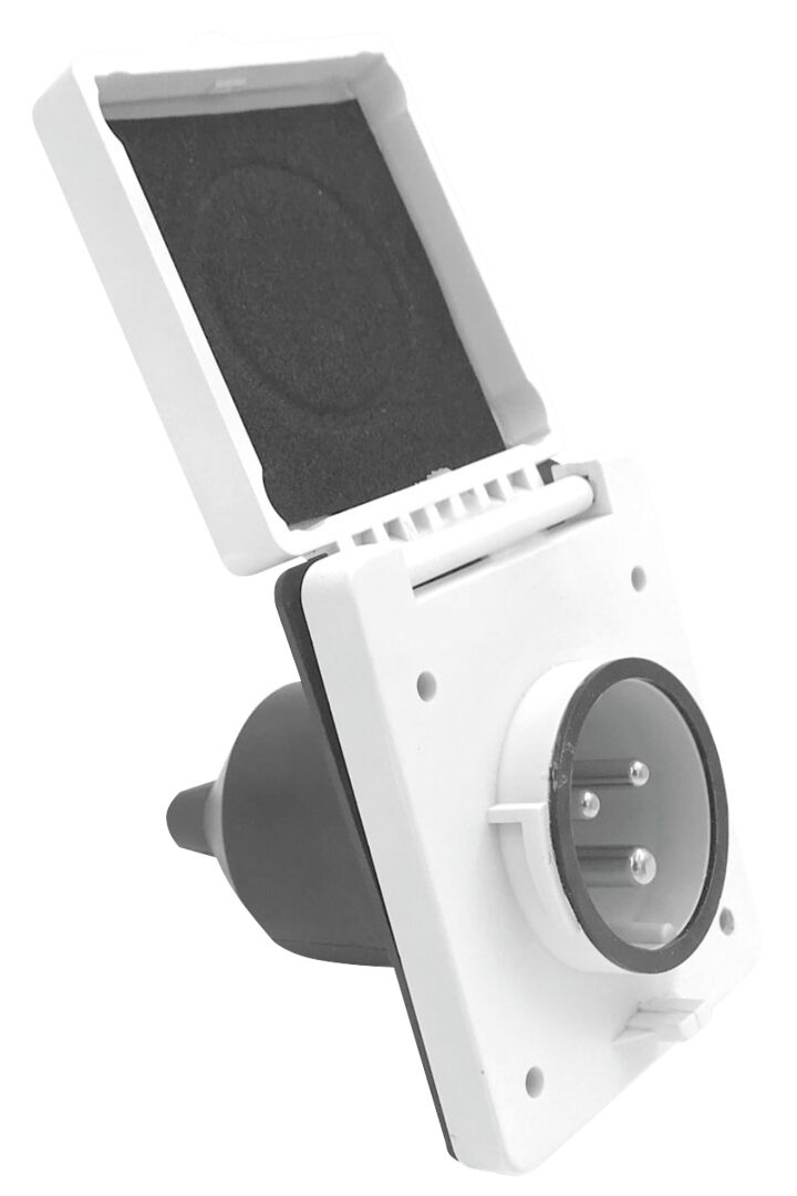 Pistorasia 16A - 250V, valmistettu PA6 PVC:stä, nikkelöidyt messinkikontaktit.