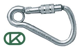 Karbiinihaka ruostumatonta terästä AISI316, CE-testattu ja hyväksytty, todistus EN 362 turvavyölle ja kiinnitykseen, kaksoisvarmistuslukko, iso aukko.