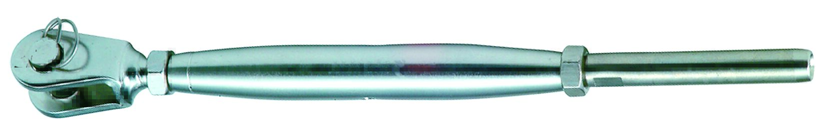 Kaidevanttiruuvi, ruostumatonta terästä AISI316. Vaijerin halkaisija 5,0 mm.