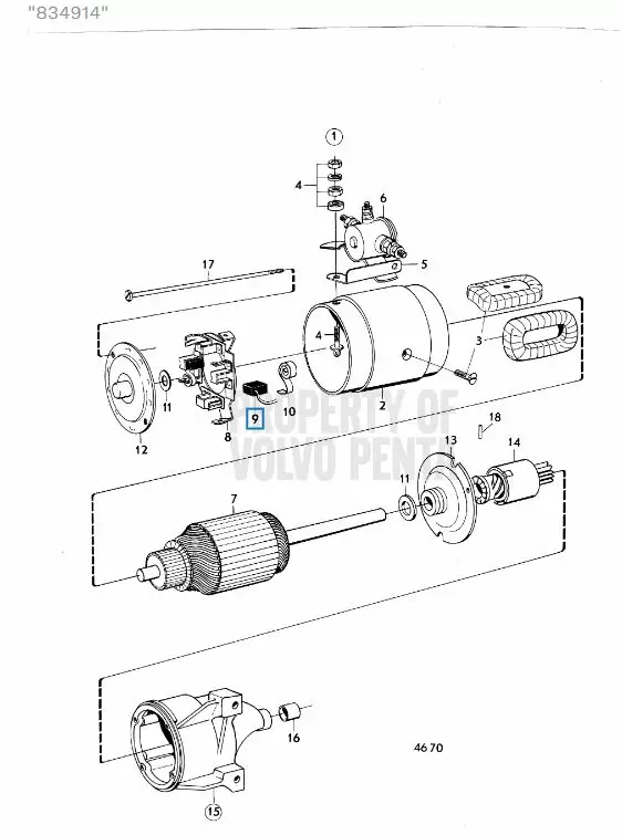 Alkuperäinen Volvo Penta hiiliharja käynnistysmoottoriin.