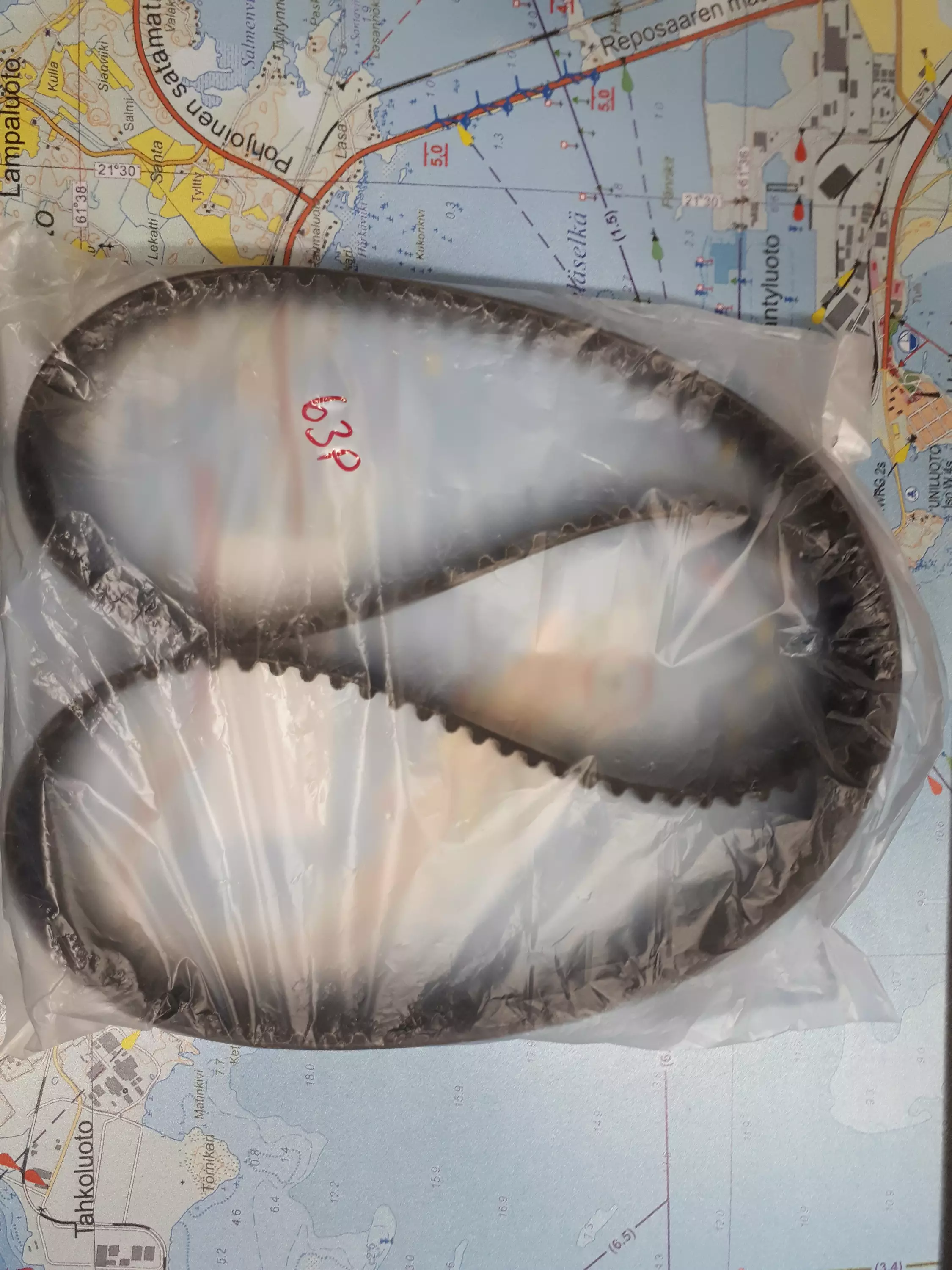 Alkuperäinen Yamaha jakohihna. Valve. V-belt. Jakohihnan vaihtoväli 5 vuotta tai 1000 tuntia. 150A-B 150D-F