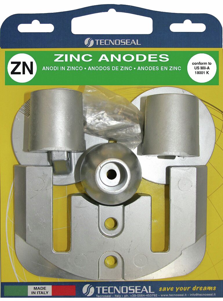 Sinkkianodi suojaa veneen rauta- ja muita metalliosia syöpymistä vastaan. Anodi asennetaan vesilinjan alapuolelle niihin kohteisiin, joita halutaan suojata. Syöpyminen tapahtuu ns. elektrokemiallisesti. Kun erilaiset metallit ovat yhteydessä toisiinsa, ne toimivat kuin sähköparisto. Metallit toimivat pariston napoina ja suolavesi yhdistää nämä navat. Tällaisessä yhdistelmässä epäjaloimpi metalli aina syöpyy. Sinkki on epäjalompi metalli suhteessa rautaan, ruostumattomaan teräkseen, kupariin, messinkiin, ym. <br /><br />Sinkkianodit on syytä tarkastaa jokaisen noston yhteydessä ja välittömästi vaihtaa, jos ne ovat kuluneita. Sinkkianodi asennetaan pituussuuntaan suojattavien metalliosien yhteyteen. Sinkkianodia ei saa maalata veneen pohjamaalilla.<br /><br />Tecnoseal nro: 00835, 00820, 00818, 00836, 00815<br />Alkuperäinen nro: 76214-4, 76214-5, 806190, 865182, 821630
