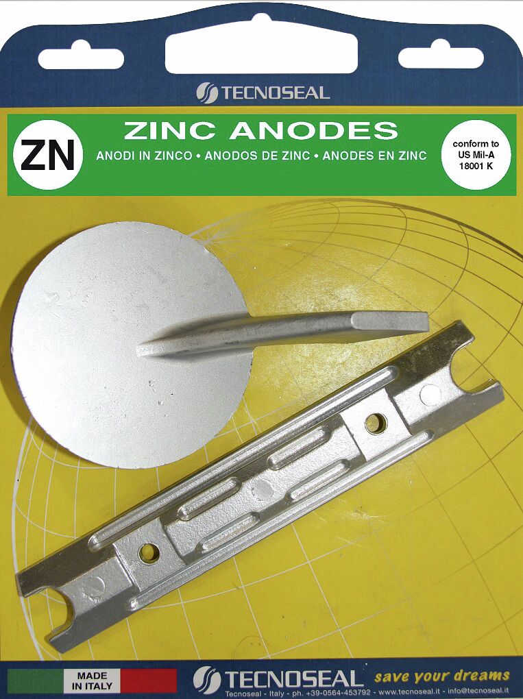 Sinkkianodi suojaa veneen rauta- ja muita metalliosia syöpymistä vastaan. Anodi asennetaan vesilinjan alapuolelle niihin kohteisiin, joita halutaan suojata. Syöpyminen tapahtuu ns. elektrokemiallisesti. Kun erilaiset metallit ovat yhteydessä toisiinsa, ne toimivat kuin sähköparisto. Metallit toimivat pariston napoina ja suolavesi yhdistää nämä navat. Tällaisessä yhdistelmässä epäjaloimpi metalli aina syöpyy. Sinkki on epäjalompi metalli suhteessa rautaan, ruostumattomaan teräkseen, kupariin, messinkiin, ym. <br /><br />Sinkkianodit on syytä tarkastaa jokaisen noston yhteydessä ja välittömästi vaihtaa, jos ne ovat kuluneita. Sinkkianodi asennetaan pituussuuntaan suojattavien metalliosien yhteyteen. Sinkkianodia ei saa maalata veneen pohjamaalilla.<br /><br />Tecnoseal nro: 01104, 01115<br />Alkuperäinen nro: 688-45371-02, 6H1-45251-03