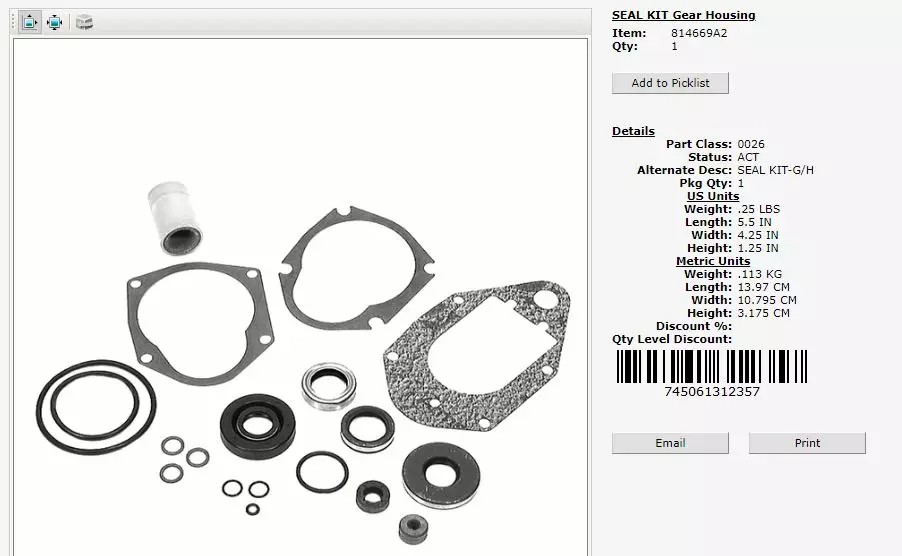 Tiivistesarja Alavaihteisto Mercury 2-4-T 50-60hv 26-814669A2. Seal Kit Gear Housing. Mercury: 814669A2