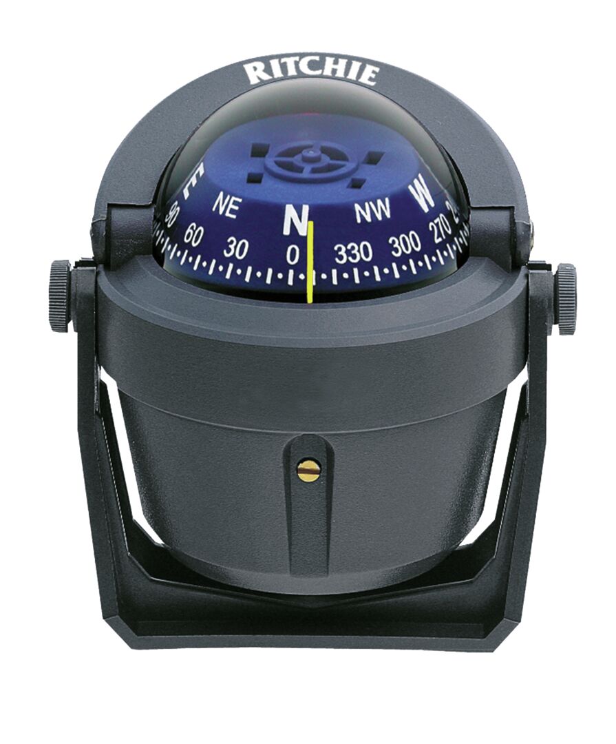 Kompassi moottoriveneisiin telineasennuksella. Asteikon koko 70 mm. (2 ¾”). Vihreä 12 V yövalo. Sisäänrakennettu kompensaattori. B-51 G, harmaa.