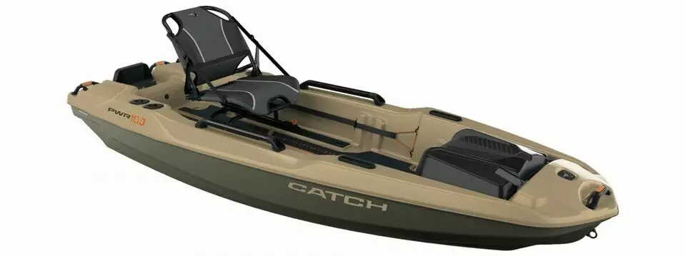 Pelican Catch PWR100 Fishing Kayak on laadukas ja hyvinvarusteltu kalastuskajakki. RAM-X™ Premium -lämpömuovirakenne antaa kajakille hyvän kestävyyden. Monipuolinen Ergo360-istuin mahdollistaa istuimen säädön melonnan ja kalastuksen ajaksi. Pelican Catch PWR100 on varusteltu hyvin, takana pyöreä 20 cm päiväluukku ja tavaroiden pakkaukseen pakkaussyvennykset sivuissa, 4 kpl kiinteitä vapatelineitä, useita varustekiskoja, sekä tukevat kantokahvat. Pohjan tunnelimainen muotoilu takaa vauhdin, tukevuuden ja merikelpoisuuden, runko täyttää American Boat and Yacht Councilin standardit (ABYC Standards).