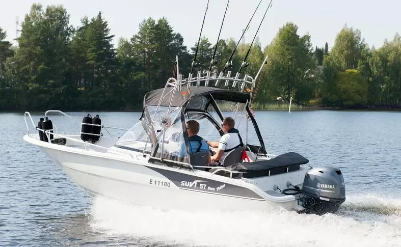 Suvi 57 Duo Fisher on kalastajille suunniteltu, kuomulla katettava tuplapulpetillinen uistelu/kalastusvene.