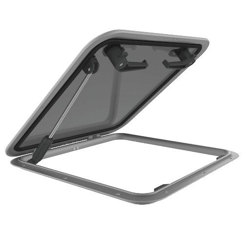 The sleekly designed Low Profile Hatch is ideal for use on a powerboat. Smaller ventilation hatches are a better fit for sailboats, while the larger sizes can be used as foredeck hatches on smaller to mid-size yachts. Our hatches feature Lewmar's unique sealing system allowing easy acrylic replacement. All sizes are suitable for CE Area 2 (Deck, Coachroof, Cockpit and Transom). Size 10 Low Profile with Stay is made to order. Mounting Instructions Fit to a flat surface with a maximum tolerance of +/- 1mm. Fastening size at hinge section use (M6 / 1/4'). Fastening size for lower frame use 5mm CSK screw No.10 UNC 2 BA.