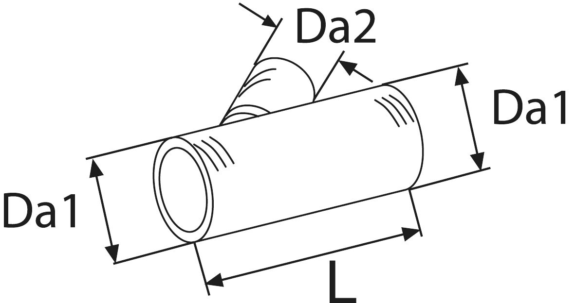 45° oksamalli muovia, musta. Da1 = 90 mm; Da2 = 60 mm; L = 145 mm.