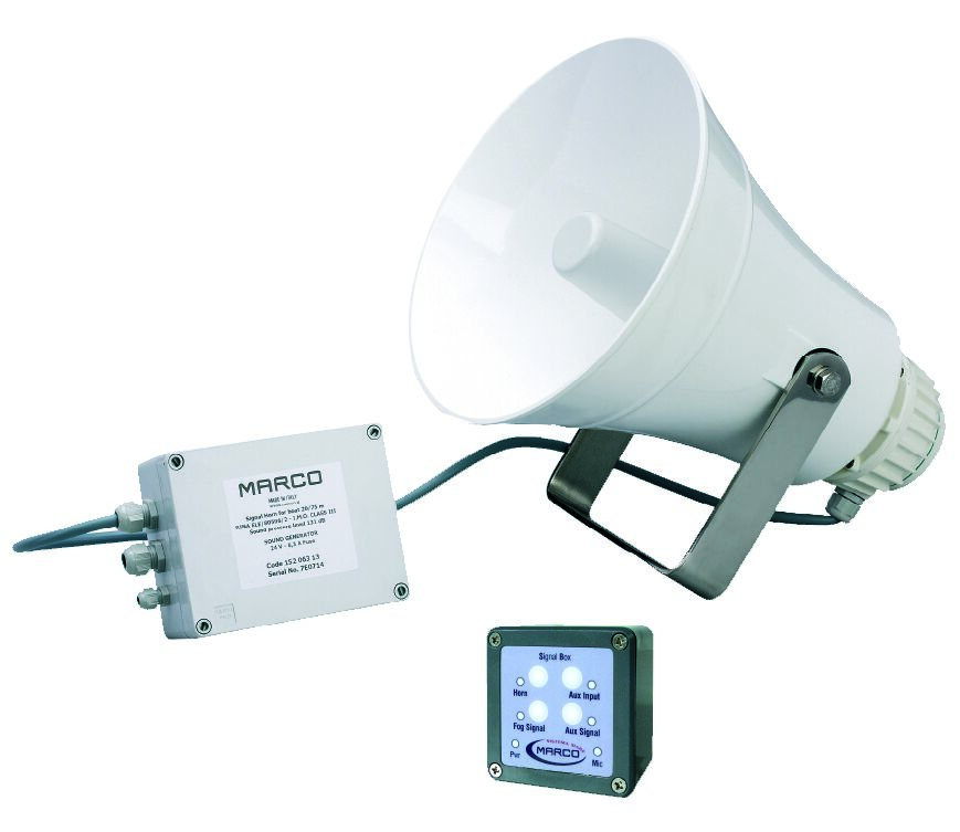 Sähköinen merkinantotorvi 20-75 m aluksille. MKL:n tyyppihyväksyntä. 131 dB/690 Hz. Automaattinen sumusignaalitoiminta.<br /><br />Torven mitat Ø325x437.