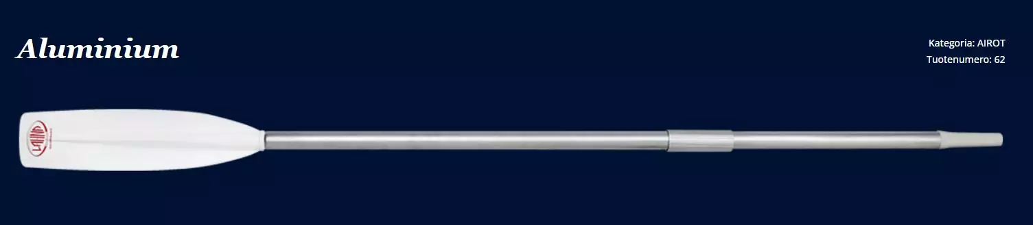 Huoltovapaa ja säänkestävä alumiiniairo, jossa on kestävä muovilapa ja muotoiltu muovikahva. Varsi on vaahtotäytteinen, jonka ansiosta airo kelluu.