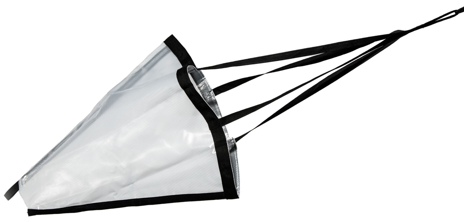 Vahvaa nailonia. Koko 1350 x 1400 mm, veneen pituus 12 m.