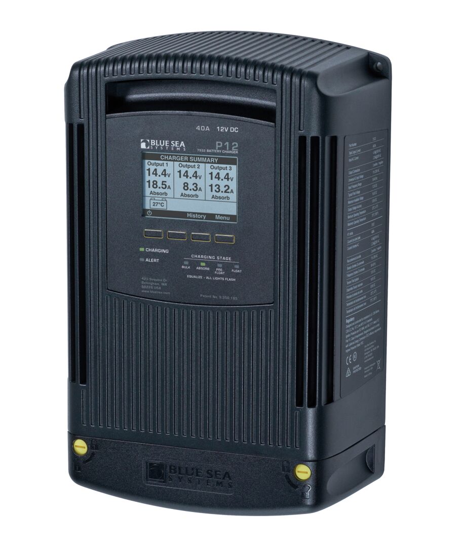 Akkulaturissa 4-vaiheinen latausprosessi ja kolme lähtöä. Asennus kuivaan tilaan, soveltuu käytettäväksi vaativimmissakin ympäristöissä. • Kestävä siivekkeinen alumiinikotelo • PreFloat™-latausvaihe estä ylilatauksen • Tehokerroinkorjaus tehostaa AC-käyttöä • Intuitiivinen diagnostiikkanäyttö • Käyttäjän valittavissa olevat latausprofiilit ja muokattavat asetukset • Mahdollistaa jopa kolmen akun lataamisen • Kookas kirkas näyttö • Monikielinen valikko: Englanti, Ranska, Saksa, Italia, Espanja • Latauksen koordinointi Blue Sea Systems -yhtiön Automatic Charging Relays (ACR) -säätimien kanssa, ACR varmistaa kullekin akulle sopivan kellutuslatauksen • Akkulämpötilaan perustuva kompensointi - säätää latausjännitteen akkulämpötilaan perustuen • AC yli- ja alijännitetilat aiheuttavat sammutuksen ja automaattisen uudelleenkäynnistyksen • Akun yli- ja alilämpötilan suojaus - lataustoiminto ei käynnisty mikäli akun lämpötila nousee tai laskee asetusarvojen ohi • DC-ylijännite- ja väärän napaisuuden suojaustoiminnot • Syöksyvirta- ja oikosulkusuojaustoiminnot