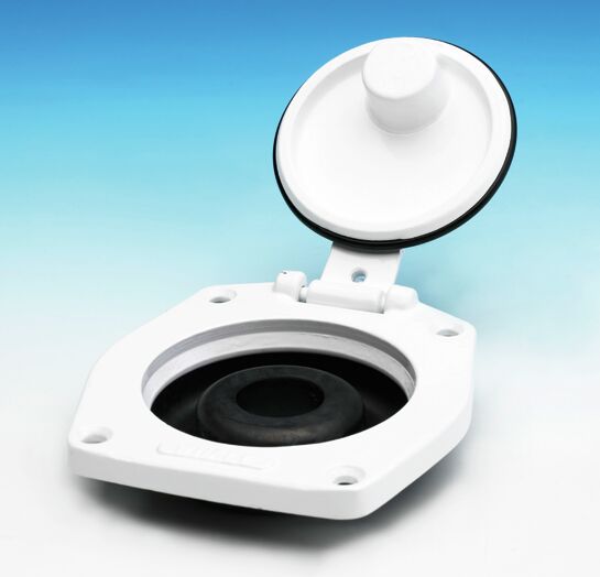 Valkoinen alumiinihela kannella Whale-pumpuille. Whale-kansihela antaa vesitiiviin liitännän kannen tai laipion läpi. Valmistettu metallista, joten se ei haalistu tai värjäänny. Täydellinen kannella, kumitiivisteellä ja ruuveilla varustettu kansihela Gusher 10 tai Urchin pumpulle.