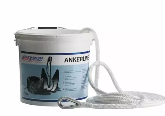 Köysi toimitetaan kätevässä muovisangossa, jota voidaan käyttää ankkuriköyden säilytysastiana.