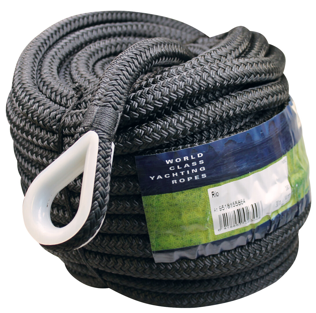 Valmis ankkuriköysi muovikoussilla. Rio on ankkuri- ja kiinnitysköysien parhaimmistoa. Köysi, joka ei kierry eikä sotkeudu ja joka tuntuu pitkänkin käytön jälkeen mukavan pehmeältä. Sekä 16-lyöty kuori että 8-lyöty sydän on valmistettu puhtaasta korkealuokkaisesta Diolen-polyesterista ja ovat äärimmäisen kulutusta kestävä.