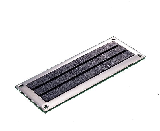 Astinlevy ruostumatonta terästä/mustaa kumia, 57 x 222 mm.