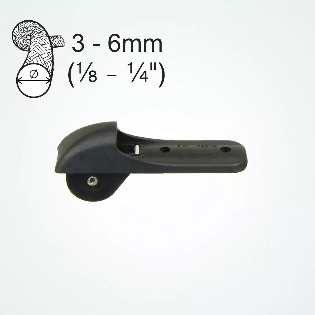 Clamcleat® CL835 on suunniteltu ohjaamaan köyden putken sisältä ulos ja lukitsemaan sen joko alumiinisen CL211 Mk2 tai nailonisen CL272 -lukon avulla. Sopii 3–6 mm (1/8'–1/4') köysille. Maksimikuormitus on 150 kg (300 lb).