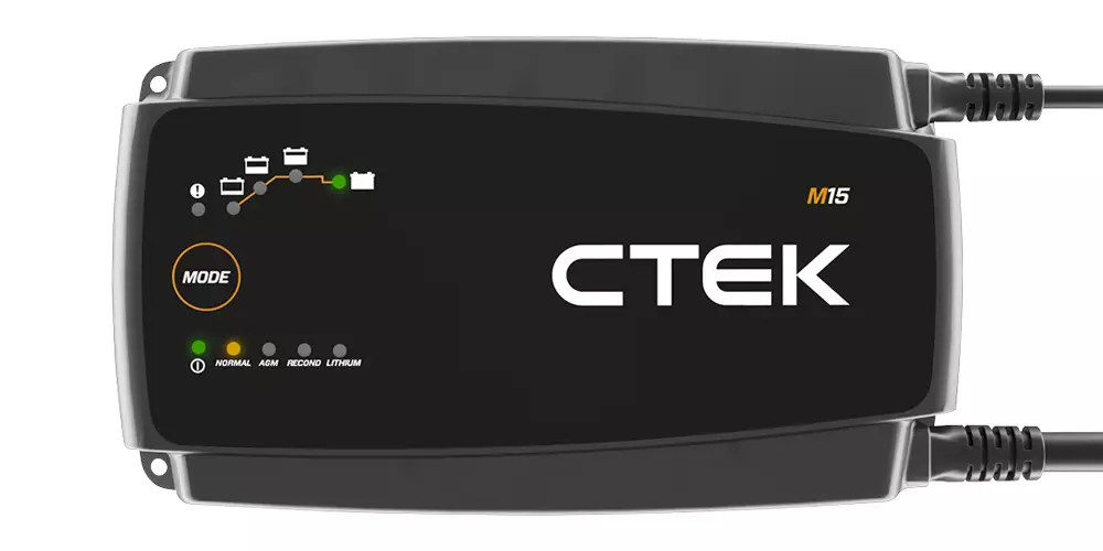 M15 on täydellinen 15 ampeerin akkulaturi kaikille veneenomistajille. Sillä on monia toimintoja, kuten elvytystila syväpurkautuneiden märkä- ja Ca/Ca-akkujen kunnostukseen ja lämpötila-anturi, joka optimoi varauksen, jos lämpötila poikkeaa arvosta +25°C. Siinä on myös litium* -ohjelma litium*–akuille. M15 toimitetaan pitkällä 4 metrin kaapelilla, jossa on M10 silmukkaliittimet helppoa veneasennusta varten. *) 12 V litium-akut (LiFePO4, Li-Fe, Li-iron, LFP)