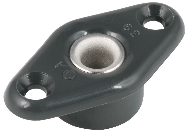 Laipallinen nailon köysiohjain, jossa on ruostumattomasta teräksestä valmistettu sisäosa. Helppo asentaa, sillä se vaatii vain kaksi ruuvia eikä lainkaan liima-aineita tai silikonia. Suojaa sekä köyttä että pintaa kulumiselta.
