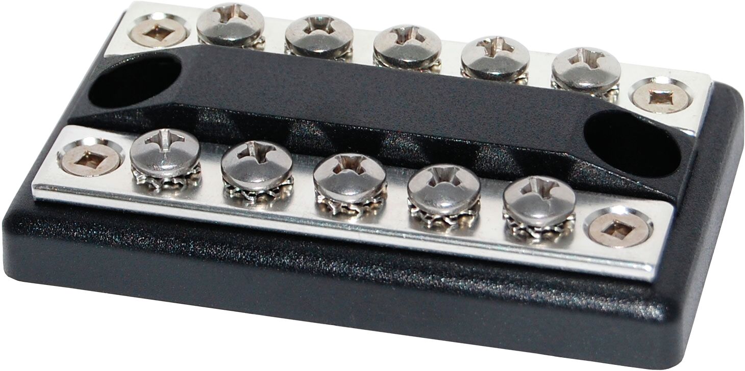 TEKNISET TIEDOT:<br />Maksimi jännite: 300 VAC | 48 VDC<br />Riviliittimen ruuvien lukumäärä: 5 per kisko<br />Liitintyyppi: #8-32 ruuvi<br />Jatkuva virrankesto: 100 A<br />Pohjamateriaali: ABS<br />Kiskomateriaali: Tinattu kupari CDA 110 / UNS 11000<br />Korkeus: 5,88 mm (5?8')<br />Paino: 0,1 kg (0,21 lb)