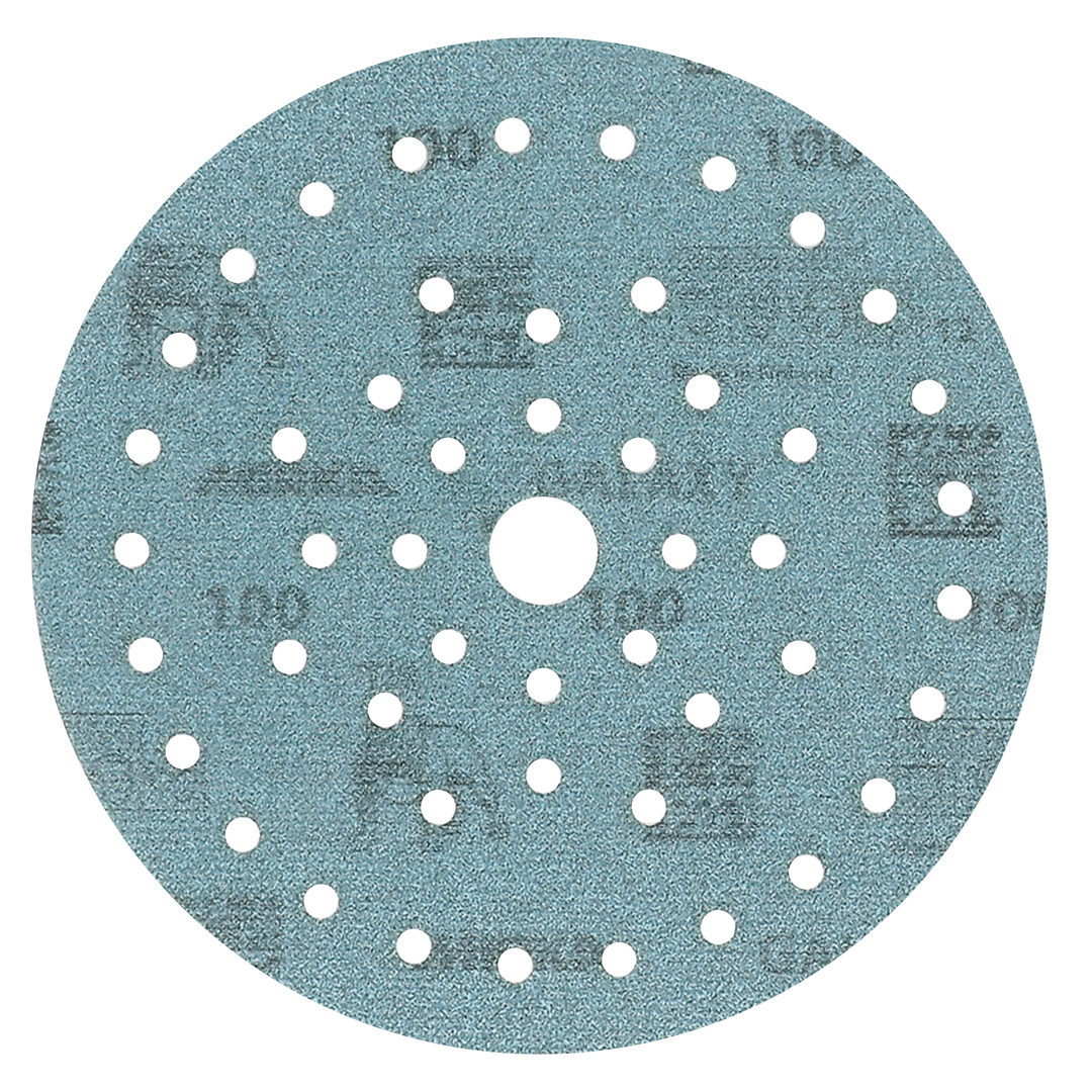 Mirka Galaxy Multifit on monikäyttöinen hiomatuote. Tuote soveltuu metallin, puun, lasikuidun, tasoitteiden ja gelcoatin kuivahiontaan. Karkeus 100, halkaisija 150 mm, tarra. 50 kpl/pkt. Keraamiset hiomajyvät teroittuvat itsestään hionnan aikana, jonka ansiosta hiomatuote säilyttää pitkän käyttöiän sekä tehokkaan hionnan. Optimoitu Multifit-konsepti varmistaa sen, että hiomatuotteen voi asettaa kohdistamatta sitä alustallaan. Sama reikäkuvio mahdollistaa myös erinomaisen reunakestävyyden sekä hyvän pölynpoiston. Tuotteen pinnassa oleva pinnoite estää tukkeutumista ja pidentää käyttöikää. Mirka Galaxy sopii useille eri aloille kuten autojen vauriokorjaukseen, veneiden valmistukseen sekä puuteollisuuteen.