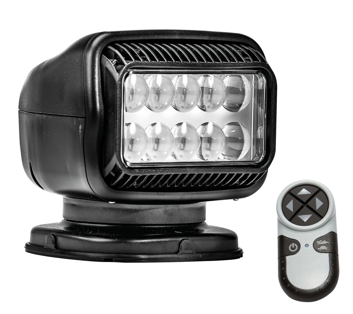 Tehokas valolähde, tarkkuustyönä muotoiltu heijastin ja optiikka ovat tärkeimpiä ominaisuuksia tehokkaaseen suoraan valaistukseen. Kauko-ohjattava valonheitin LED-tekniikalla, kiinteään asennukseen. Teholedien suojana suurentavin linssein varustettu lasi. Valoteho 410 000 candelaa, valokeilan pituus 1250 m, valokeilan leveys 8°. Valkoinen runko on UV- ja iskunkestävää muovia. Radio-ohjaus kädessä pidettävällä ohjaimella. Kääntösäde 370° ja 135° ylös-alas-kulmasäde. Virrankulutus 2,8A, 13,8 V.