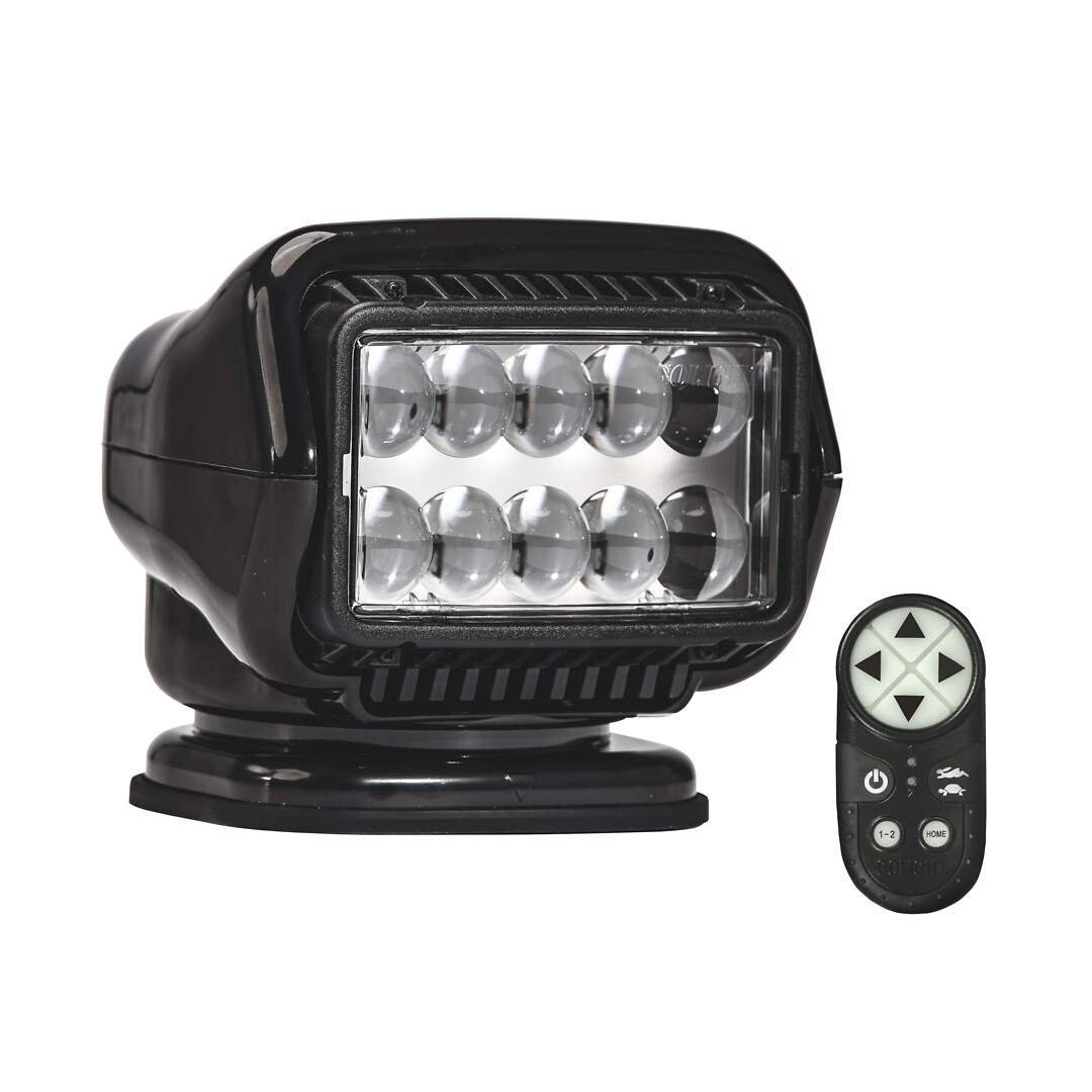 Kiinteästi asennettava 12 V valonheitin, jossa on langaton kaukohallinta. Mukana erillinen kädessä pidettävä kaukosäädin. • 10 erittäin kirkasta LEDiä, valonsäteen kulma 8° • 544 000 kandelaa, valonsäteen maksimietäisyys 1474,9 metriä • 3,7A 13,8 V:ssa