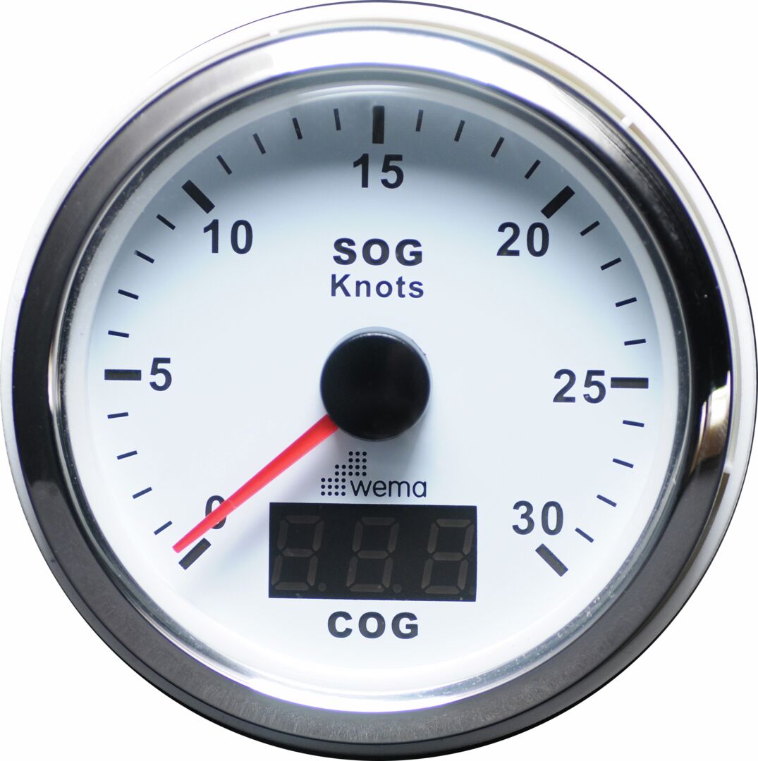 Nopeusmittari, joka näyttää tarkasti senhetkisen nopeuden (nopeus pohjan suhteen) ja kulkusuunnan (suunta pohjan suhteen). Mittari näyttää nopeuden analogisesti ja suunnan digitaalisesti, molemmat arvot perustuvat GPS-signaaleihin. GPS Speedossa on 32-kanavainen ”high-end” GPS-vastaanotin. Mittari sopii kaiken tyyppisille veneille ja on helppo asentaa. Asennus-Ø 85 mm, asennussyvyys 55 mm. Vakiona punainen ja keltainen valaistus. Käyttöjännite 12 V, nopeusalue 0-30 solmua. Valkoinen pohja, kehys ruostumatonta terästä.