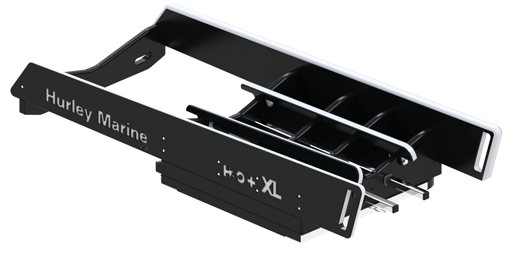 Hurley Marine H3O+ XL Dinghy Davit kuljetusramppi manuaalisella vinssillä, maksimikuormitus 453 kg. H3O+ XL Dinghy Davit on suunniteltu erityisesti kumiveneiden, vesiskoottereiden ja kovapohjaisten apujollien nostoon ja säilytykseen. Tämä uusi H3O+ XL Dinghy Davit -järjestelmä tarjoaa enemmän toimintoja kuin aiemmat H3O- ja H3O±mallit. Soveltuu erinomaisesti korkeille uima-alustoille, laitureille ja/tai painaville apujollille. Tarjoaa nopean vapautuksen ja on aina käytettävissä myös hätätilanteissa. Ihanteellinen jopa 3,96 m:n pituisiin ja maksimissaan 453 kg veneisiin. Valmistettu merivedenkestävästä korkeatiheyksisestä polyeteenistä, mikä vähentää kitkaa nostossa ja laskussa.