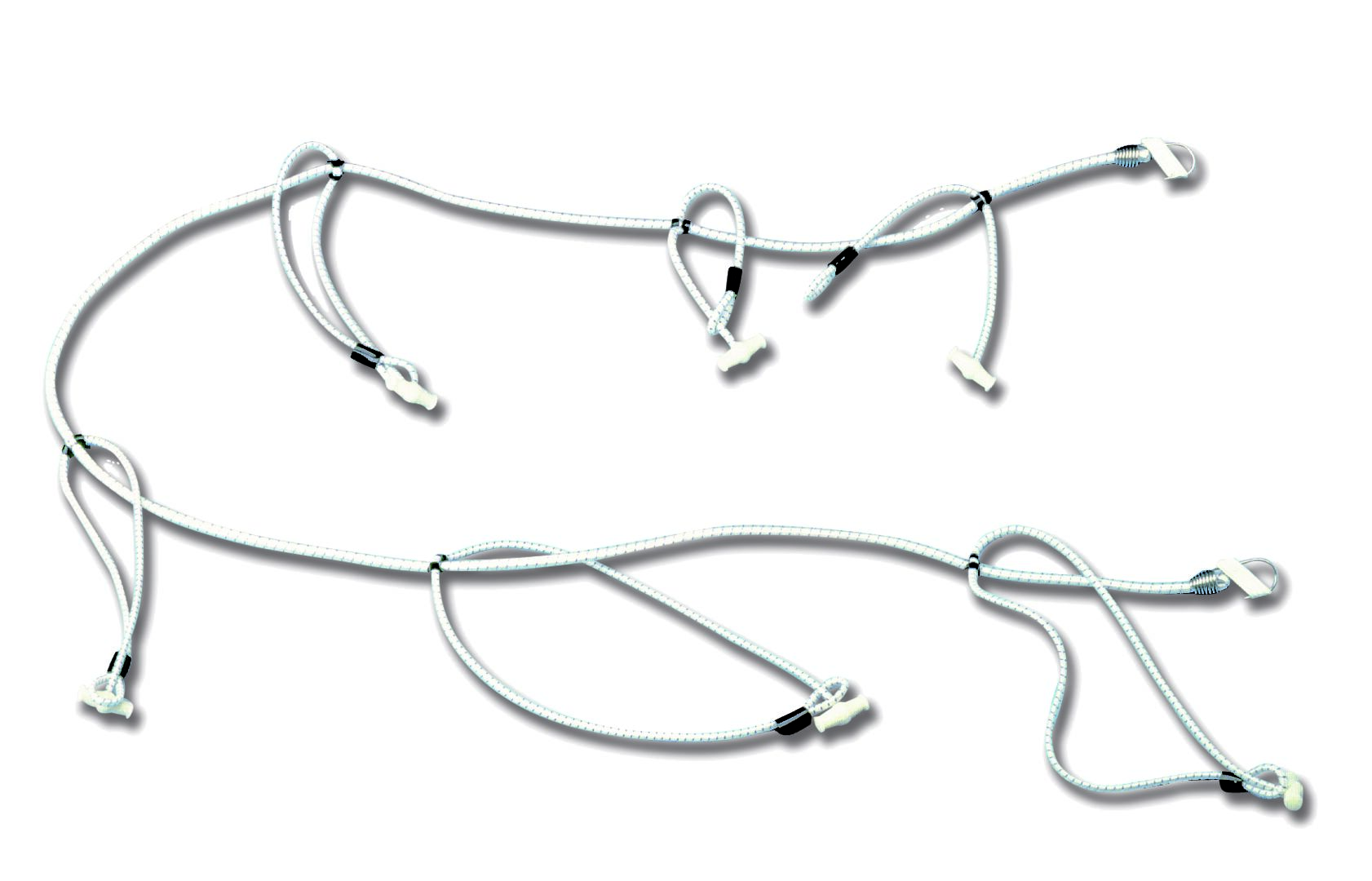 Joustimessa ruostumattomat teräskoukut molemmissa päissä, poikkijoustimissa lenkit ja nappulat