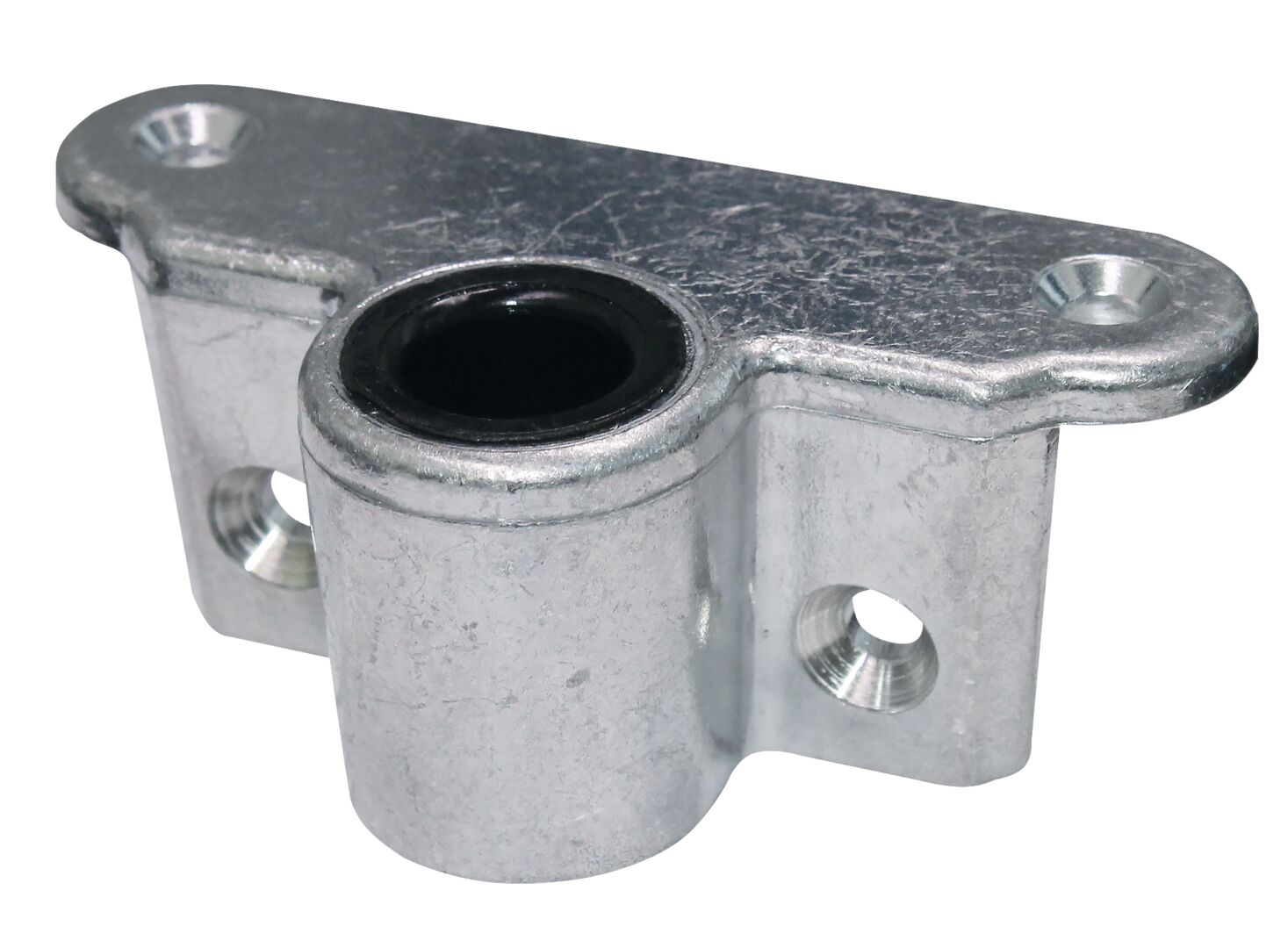 Laitaan kiinnitettävä hankainlaakeri lukituksella. Kevytmetallia, kiinnitys neljällä ruuvilla. Reikäväli päällä 80 mm ja sivussa 52 mm. Laakerin Ø 17 mm.
