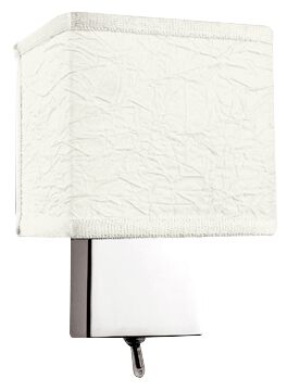 Moderni ja elegantti seinävalaisin. Valaisimessa on tukeva, kromattu messinkirunko ja vaalea kangasvarjostin. Valaisimessa on oma katkaisin. Lampun kanta G4. 12/24 V, max 20 W.