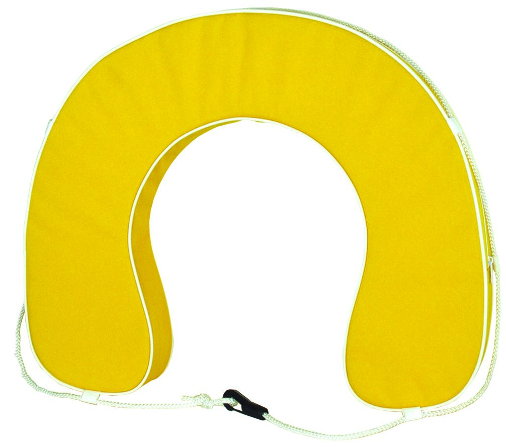 Hevosenkenkä-mallinen pelastusrengas. Nailon-päällyste. Keltainen.