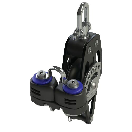 • alumiininen kannatinkehikko<br />• erittäin korkea murtolujuus<br />• liukulaakeroitu keskiö<br />• sivuttaiskuormakitka vähennetty kuulalaakereilla<br />• sakkelikiinnitysmekanismi Racing-sarjasta, lukitus kuusiokoloruuvilla<br /><br />HTX 60 mm <br />kiinnike Ø 11,9 mm<br />sakkelin tappi Ø 6 mm<br />köysi maksimi Ø 12 mm<br />työkuorma 1100 kg<br />murtolujuus 2200 kg
