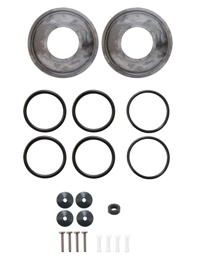 Pakkaus sisältää:<br />• 2 Pieni O-rengas<br />• 4 Venttiili<br />• 4 Venttiilin kara<br />• 4 Suuri O-rengas<br />• 4 Poraruuvi<br />• 1 Tiivistealuslevy<br />• 2 Kalvo