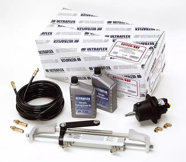 Ultraflex HYTECH-OBF/M on hydrauliohjauspaketti, joka on suunniteltu perämoottoreille, joiden teho on alle 150 hv. Tämä paketti tarjoaa tehokkaan ja tarkan ohjauksen veneessäsi.