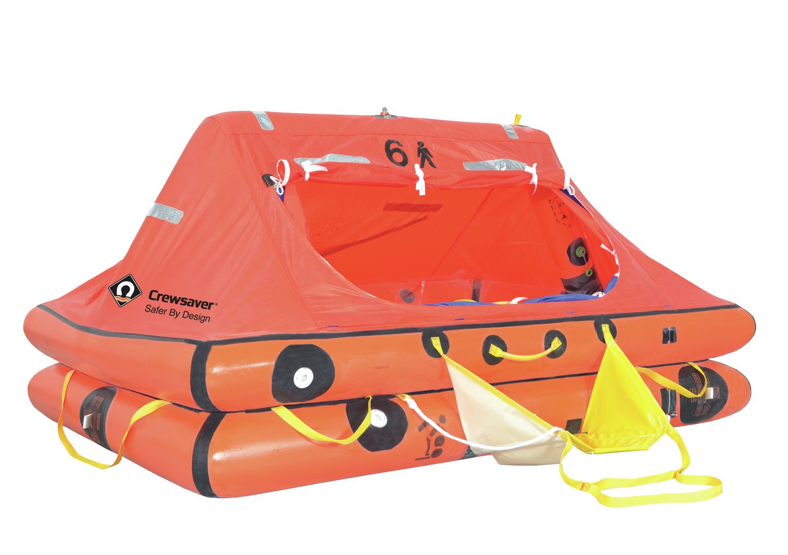 • 6-, 8- ja 10-hengen lautoissa 3 x 84 litran vesitaskut<br />• helppokäyttöinen vetoketjulla suljettava kulkuaukko<br />• teltan kangas kestävää polyuretaanipinnoitettua (PU) nailonia<br />• sisä- ja ulkopuoliset led-valot<br />• puolikova nousuramppi sekä tartuntaremmit lautan sisä- ja ulkopuolella nopeuttavat ja helpottavat turvallista lauttaan nousua<br />• innovatiiviseen kovaan kuoreen pakattuna<br />• sadeveden keräysjärjestelmä teltan takaosassa<br />• tähystysikkuna teltan sivulla<br /><br />Varusteet:<br />• äyskäri<br />• sieni x 2<br />• kelluva turvamela x 2<br />• vihellyspilli<br />• vesitiivis taskulamppu 6 tunnin käyttöajalla, varapatterit ja -polttimo<br />• merkinantopeili<br />• pahoinvointilääke 6 kpl/hlö<br />• pahoinvointipussi 1 kpl/hlö<br />• punasoihtu x 3<br />• laskuvarjoraketti x 2<br />• paikkaussarja<br />• helppokäyttöinen käsipumppu