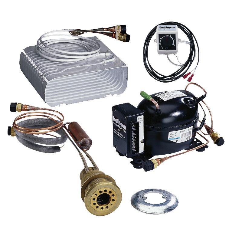 Vesijäähdytteinen kylmäkoneisto perinteisellä termostaattiohjauksella. Vesijäähdytyksen etuna on tehokkaampi jäähdytys ja hiljaisempi käyntiääni. Sarja sisältää O-mallisen peltihöyrystimen, Secop 12/24 V BD35 -kompressorin, erityisen pohjaläpiviennin, jonka avulla kompressorin keräämä lämpö johdetaan veneen ulkopuolella ympäröimään veteen, sinkkianodin sekä koteloidun termostaattikatkaisimen. Höyrystin 240 x 210 x 85 mm, maks. 125 litraiselle kylmälaatikolle.