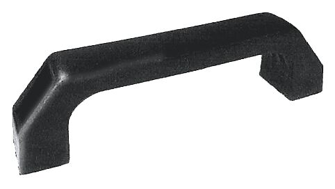 Kädensija valkoista nailonia. Pituus 140 mm, leveys 24 mm, korkeus 42 mm, reikäväli 120 mm.
