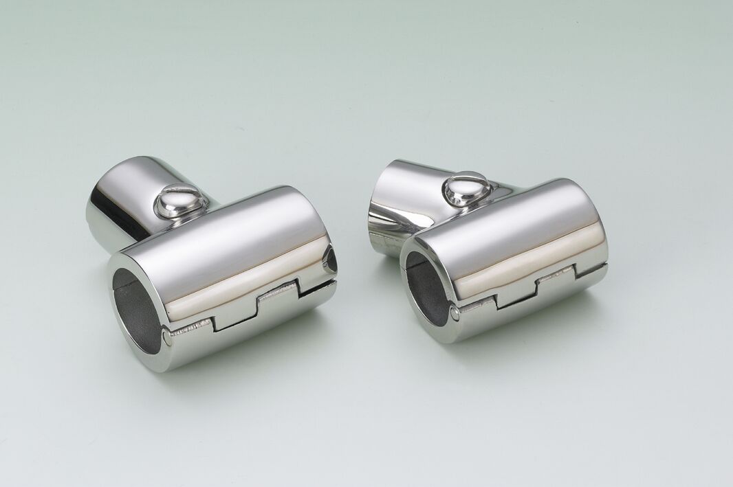 Kaidehela ruostumatonta terästä, 90° putkihela. Avattava, kolme ruuvia sisältyvät hintaan. Ø 7/8' -putkelle.