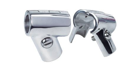 Kaidehela ruostumatonta terästä, 60° putkihela. Avattava, kolme ruuvia sisältyvät hintaan. Ø 1' -putkelle.