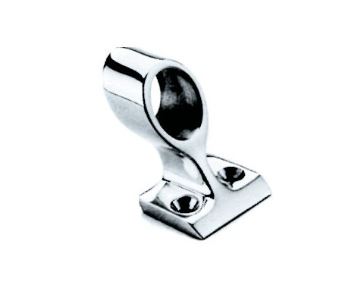 Kaidehela ruostumatonta terästä, 60° tukihela, Ø 1” putkelle, korkeus 57 mm, reiät kahdelle 1/4” ruuville.