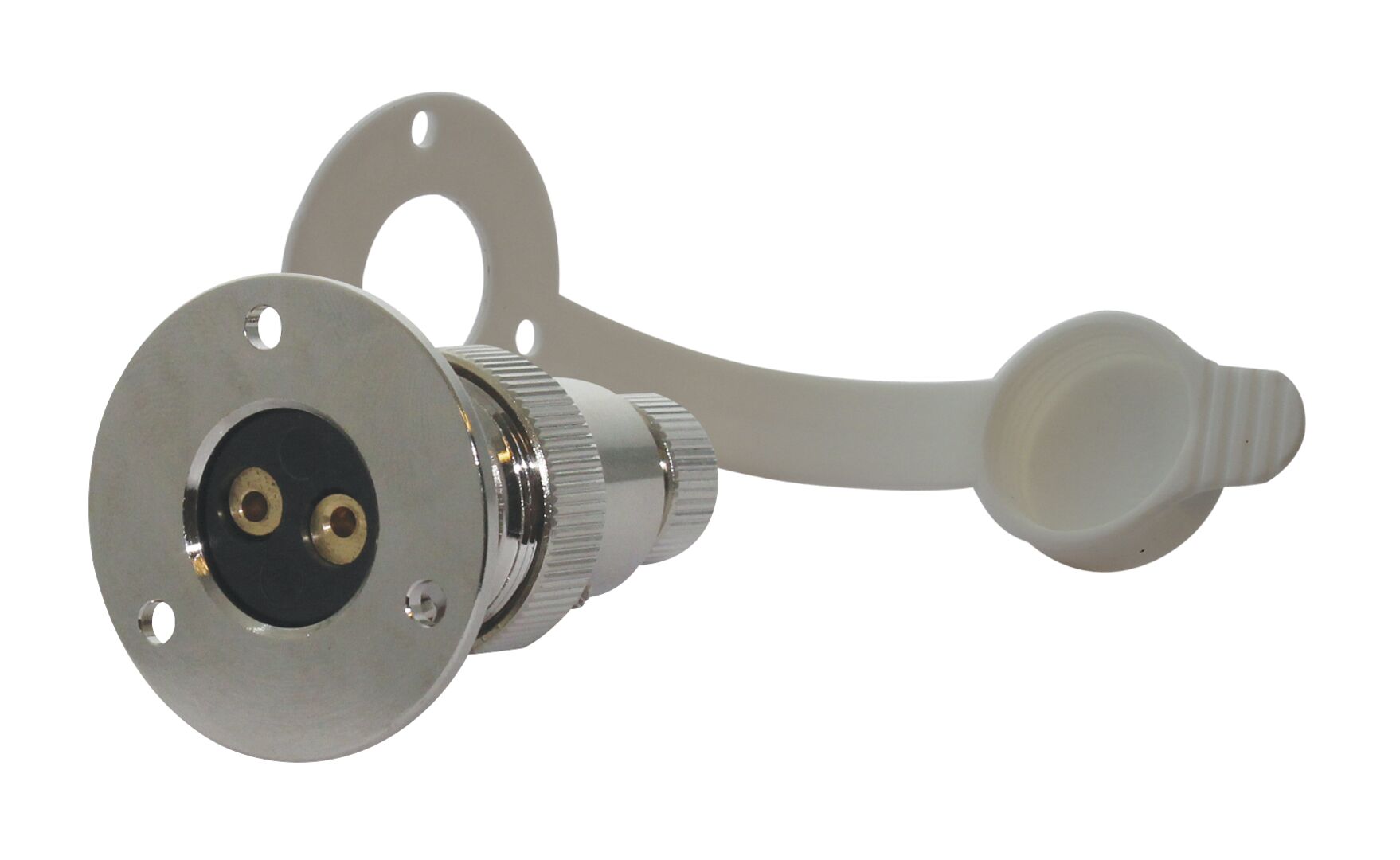 2-napainen kansikosketin messinkiä/kromattu. Vesitiivis, Ø 37 mm, 2-3 A.