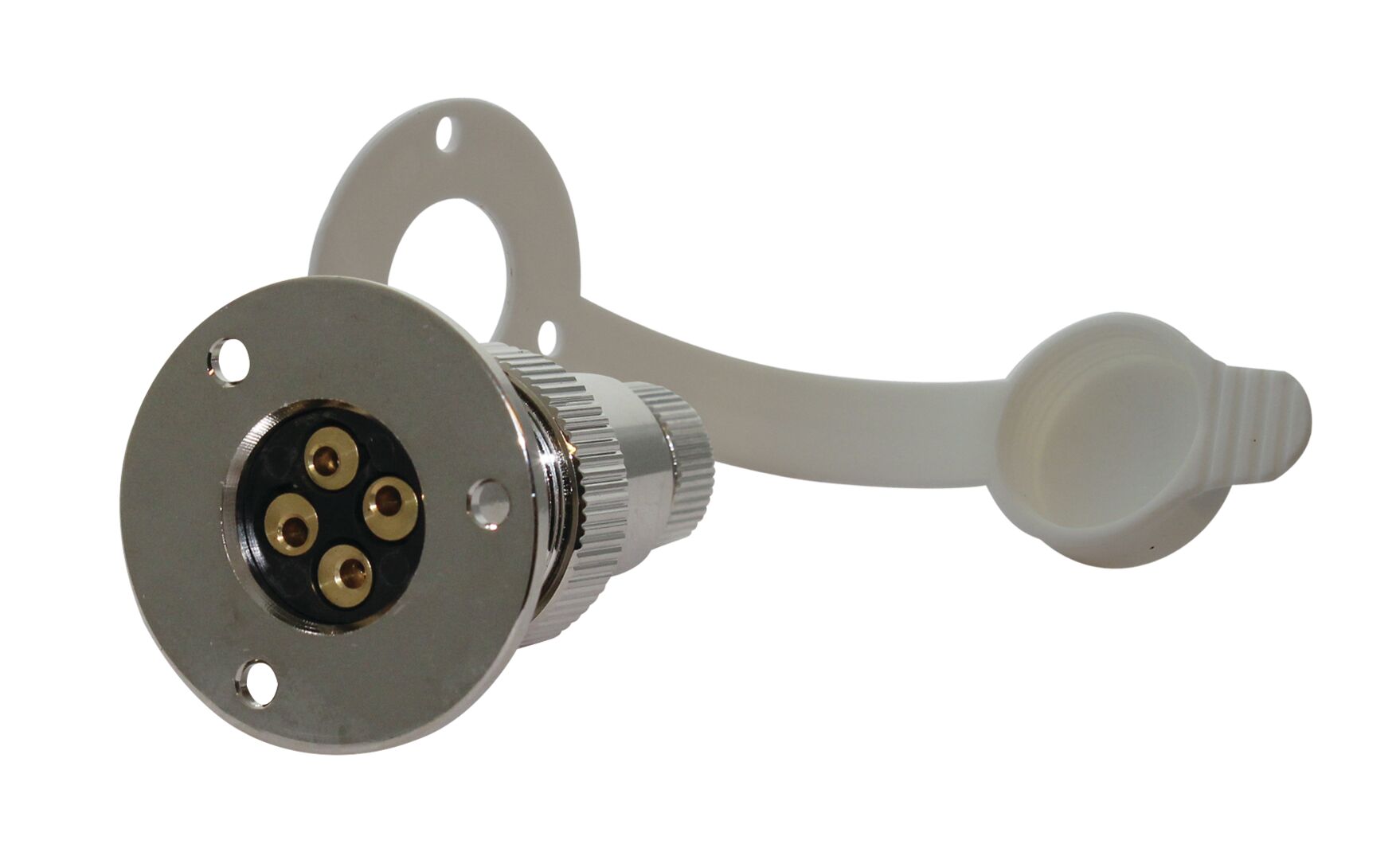 4-napainen kansikosketin messinkiä/kromattu. Vesitiivis, Ø 37 mm, 2-3 A.