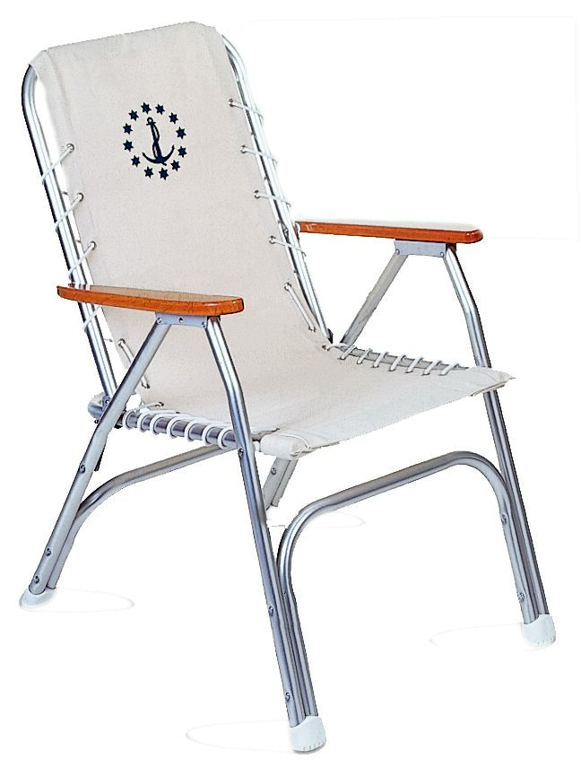 Kansituolissa kumiköydellä kiinnitetty istuinosa, kangas puuvillaa. Korkea, kokoontaitettava malli. Istuinkorkeus 38 cm ja istuinleveys 47 cm. Selkänojan korkeus 60 cm.