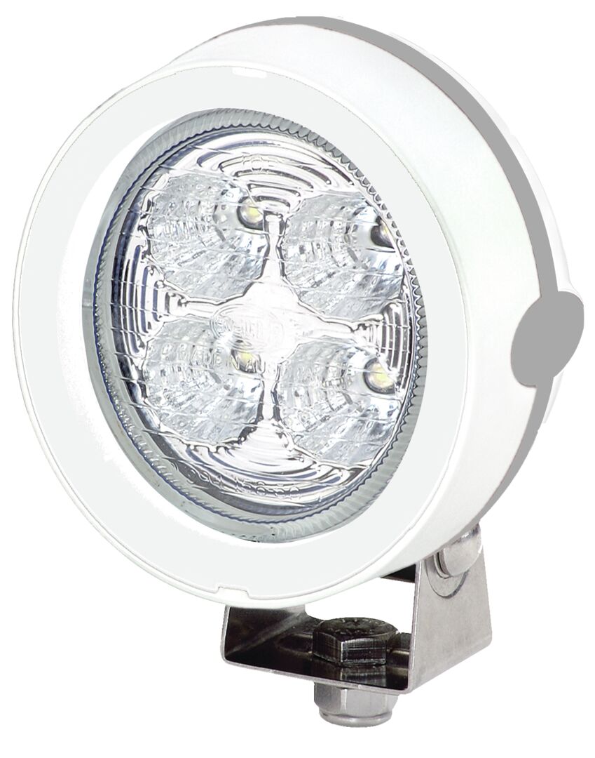 Työvalo lyhyille etäisyyksille. Sisältää kaiken Hellan edistyksellisen virransäästöteknologian tietämyksen. Valkoiseksi maalattu alumiininen lampunrunko, muovinen umpion etukehys sekä kirkas lasi. Esiasennettuna 200 cm liitosjohto.