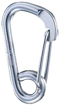 316L luokan ruostumaton teräskarbiinikoukku kiinnityssovelluksiin, epäsymmetrinen muotoilu suurempien kuormien kannattamiseen. Varustettu silmukalla punoksen kiinnittämiseen. Luokan 316L ruostumaton teräs.