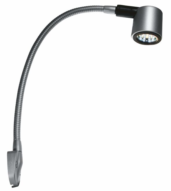 Karttavalo taipuisalla varrella. Valon väri vaihdettavissa joko punaiseksi tai valkoiseksi. Matta hopea runko. • 1,3W • 12-14 V • 70 lumenia • Pituus 130 mm. • IP21 • CRI >80